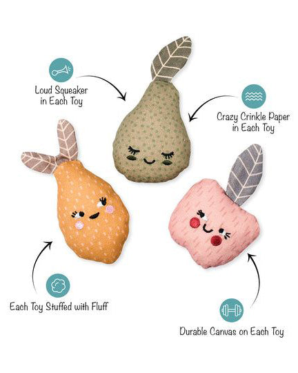 Personify Shopthis three piece mini toy set is the perfect playdate for your pup. featuring durable cotton canvas, a super loud squeaker, crazy crinkle paper, and printed with water based and non-toxic ink, toys were designed with interactive play in mind and have a look that complements modern home décor. whether you squeak, crinkle, or toss them, your pup will have unbelievable fun. toy set is great for small dogs, but is not intended for aggressive chewers. toy set is available in two styles.
