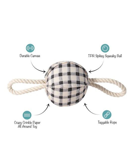 Personify Shopthis pretty painted gingham dog toy features original artwork and a modern design. using durable cotton canvas, a super loud squeaker, crazy crinkle paper, and printed with water based and non-toxic ink, this toy was designed with interactive play in mind. whether you squeak, crinkle, or toss it, your pup can't wait for the games to begin!