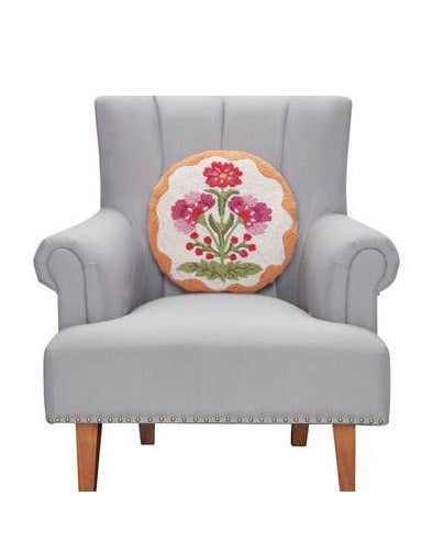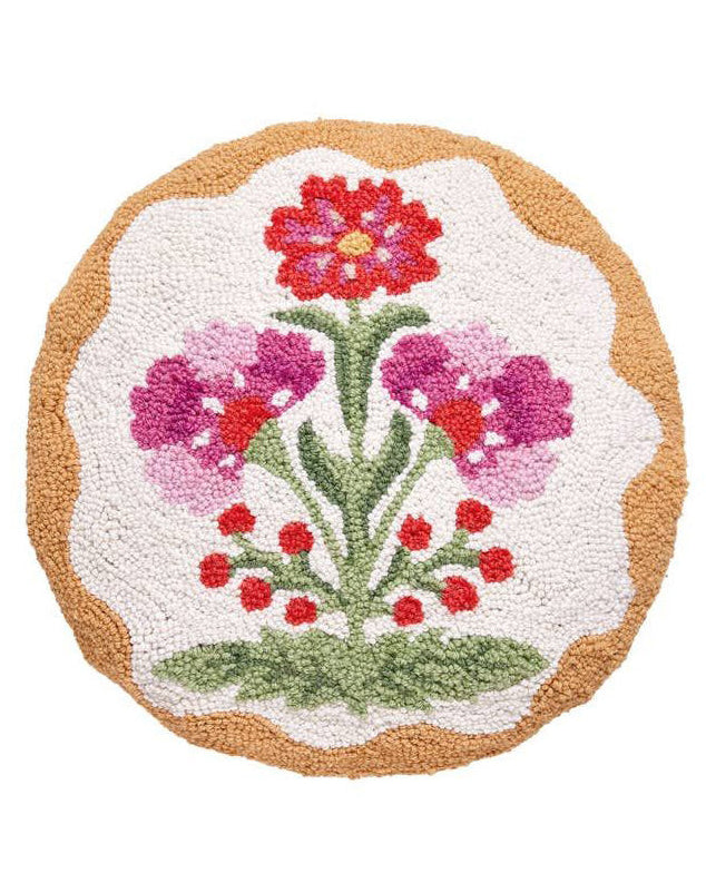 Personify Shopadd some spring to your living space with this beautifully made hooked pillow. circular pillow features a colorful floral design and a scalloped border.
