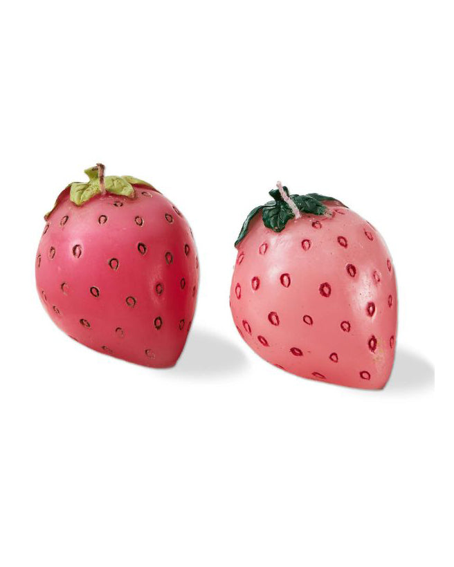 crafted from wax and cotton wicks, this set of two pink strawberry candles are a must-have. adorable, hand-sculpted candles have a hand-painted finish and add a unique touch to your spring or summer décor.