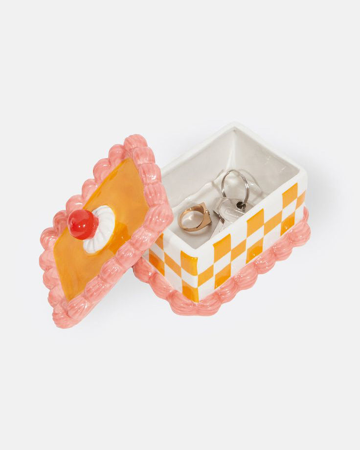 The Wow Effectadd a slice of charm to your space with this unique and colorful storage box. box comes in the shape of a highly decorated rectangular cake. practical, playful, and irresistibly stylish, this box is perfect for storing jewelry or other small items.
