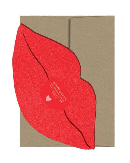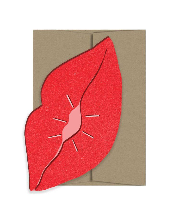 Personify Shopbisous lip card is a fun and bold way to send someone a kiss or wish them a sweet valentine's day. handmade card is die cut and comes in a festive color palette.