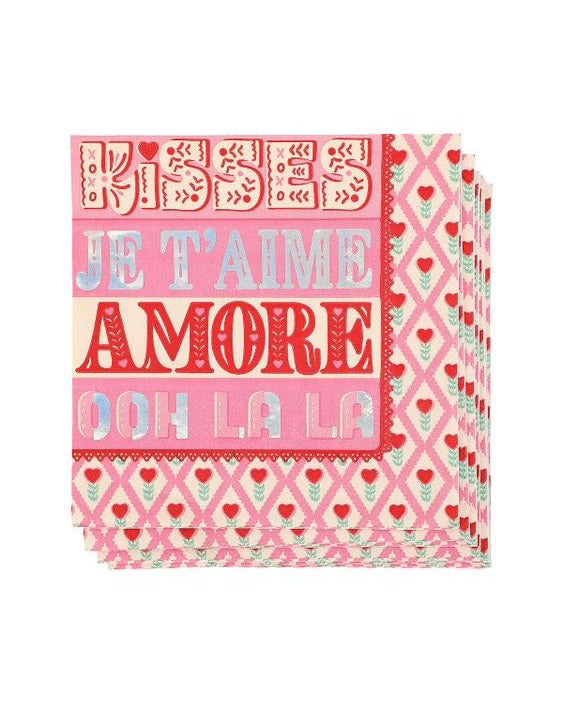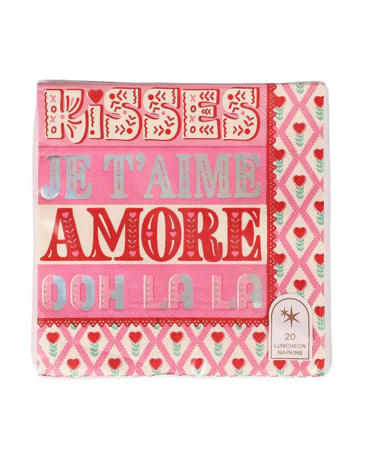 Personify Shopsay “ooh la la!” to love with these cute iridescent party napkins! napkins feature romantic phrases like “kisses,” “je t’aime,” and “amore” in shades of pink and red with silver iridescent foil accents that shimmer beautifully in the light. perfect for valentine’s day parties, galentine’s brunches, or any flirty, festive gathering that calls for a little sparkle and charm.