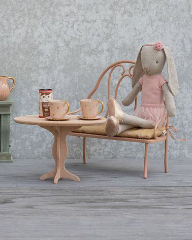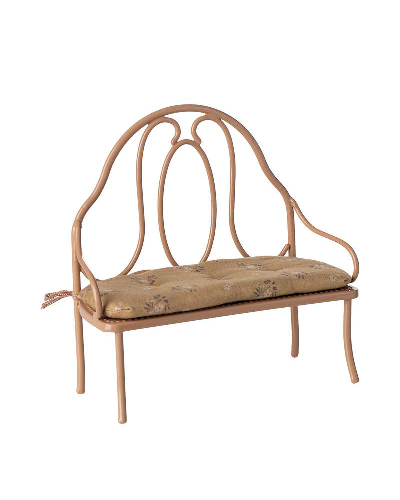 Personify Shopbeautiful vintage-inspired bench comes with a soft cushion to secure a comfortable seat for your maileg friend. bench is perfect for a short rest and fits the bunny and rabbit size 1 and 2 perfectly.
