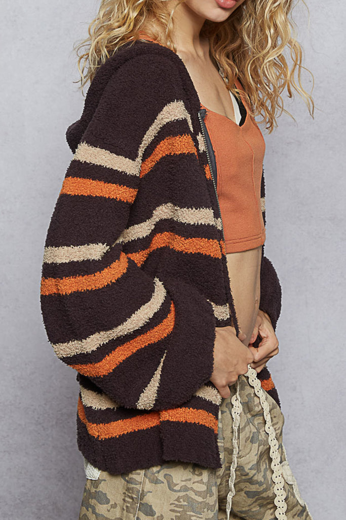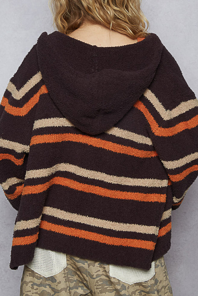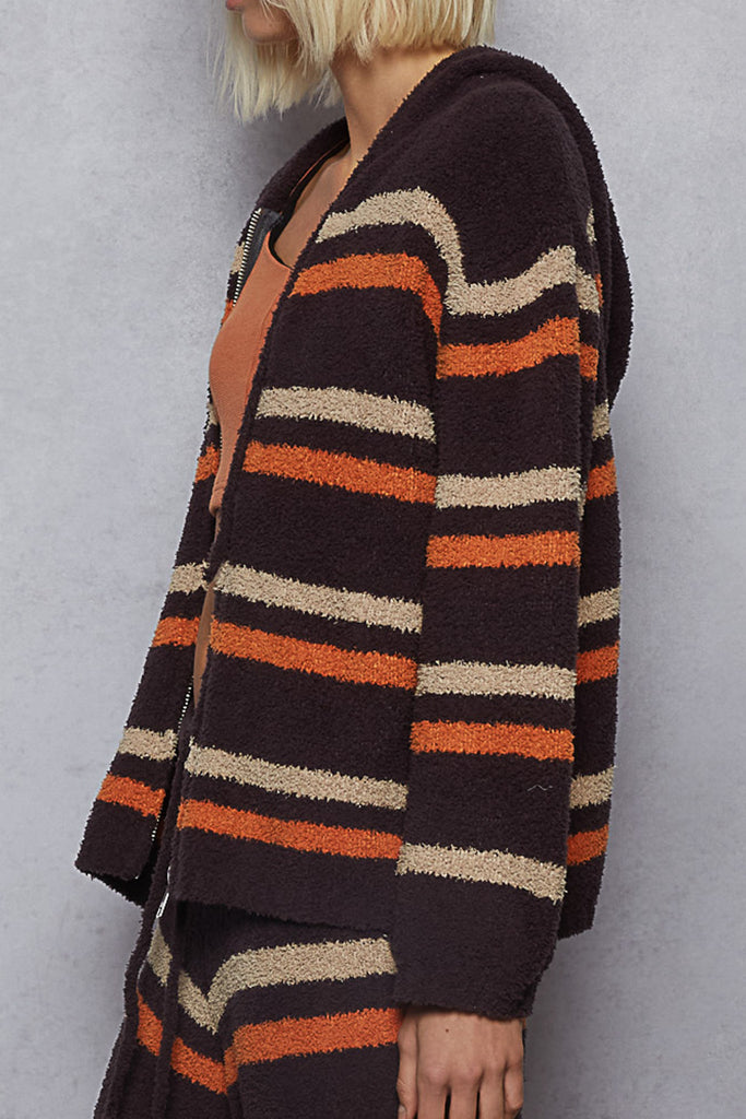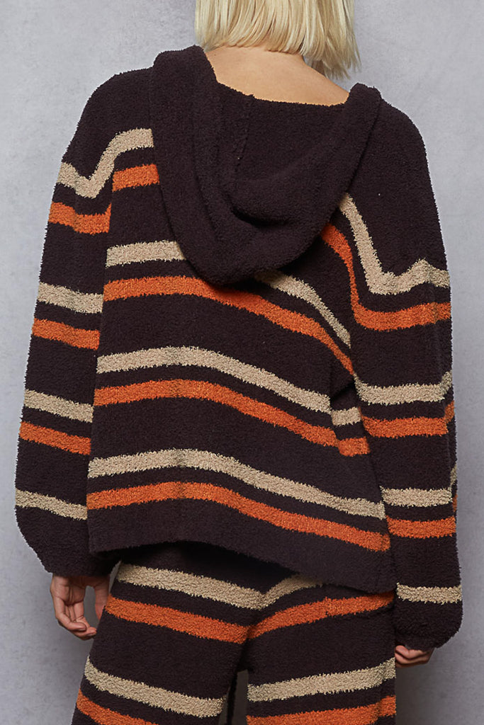 Deep Chocolate Fuzzy Stripe Hoodie *S-L*