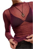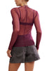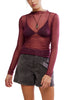 Personify Shopfree people effortless long sleeve mesh top in deep berry purple. soft and stretchy top has a sheer, textured fabrication and features a scrunched funnel neckline and a form-fitting silhouette. top can be styled over a tank or bralette or under a vest, cardigan, or dress. top runs true to size and is not oversized like many free people pieces.