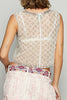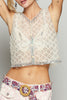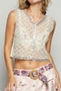 Personify Shopsheer vest with silver beaded details throughout. lightweight vest features a v neckline, button front, a cropped silhouette, and a special butterfly sequined design on front. vest can be styled over a tank, long sleeve top, or dress for a unique look.