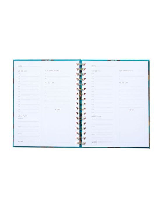 Personify Shopthis colorful planner has everything you need to stay organized. planner is compact in size and easily fits in your bag. spiral binding allows it to fold back on itself or lie completely flat on a desk. it has all the necessary spots for you to plan out your day including planning your tasks by hour, writing out your priorities, planning your meals, and even tracking your water intake.