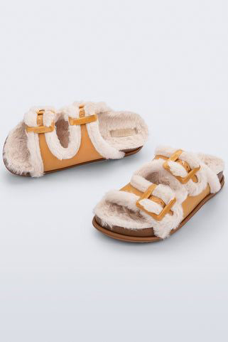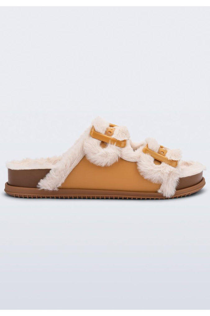 Personify Shopthe warm cozy slides from melissa shoes keep your feet toasty on cold days. with two straps and buckles covered in soft fur, this slide provides all the comfort you need. made from melflex pvc with an eva sole, shoes are lightweight and durable with refined lines that add an elegant touch. fur-lined version of the cozy slide is the perfect combination of fuzziness and practicality.