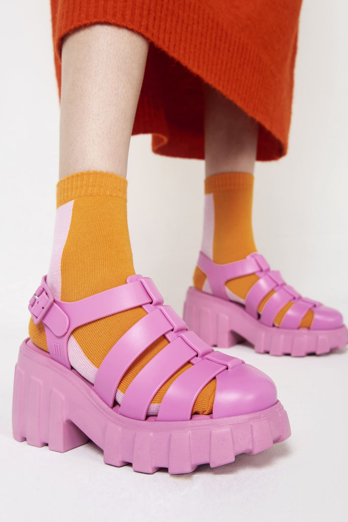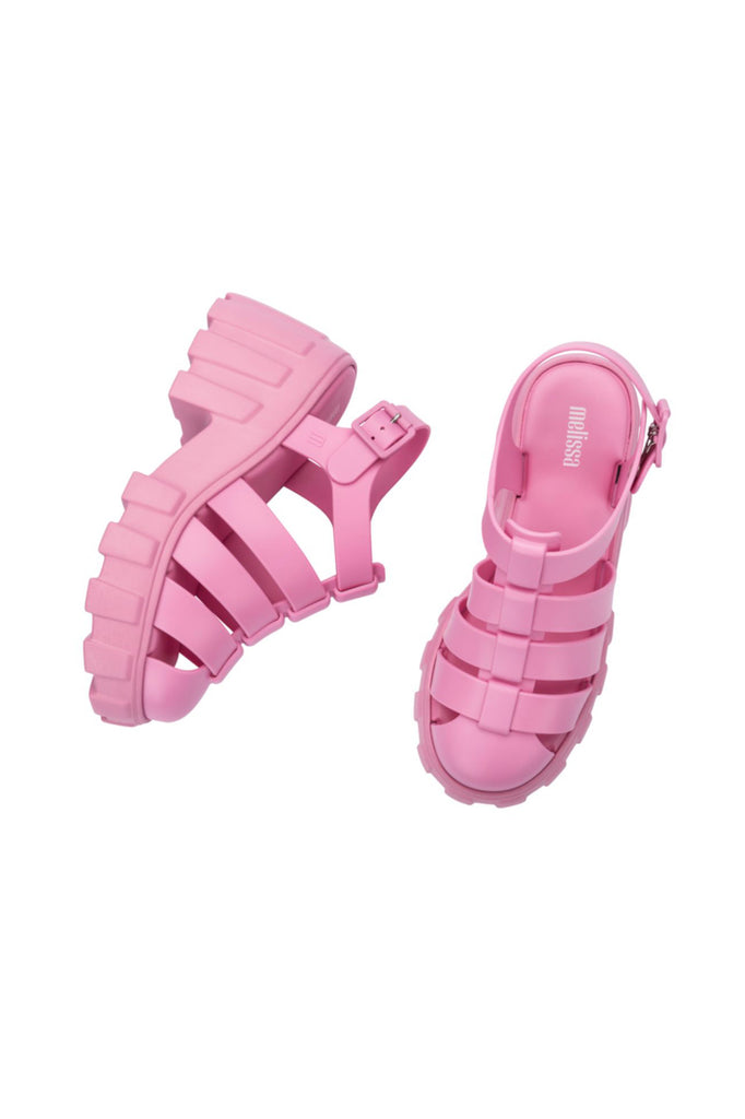 Personify Shopmodern and daring, the new melissa megan has a chunky, treaded sole. with a fisherman-style upper, the style has an irreverent and creative design making it the highlight of any outfit. fun sandals are available in bright pink.