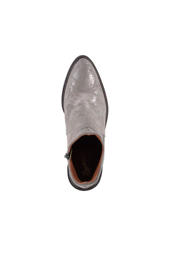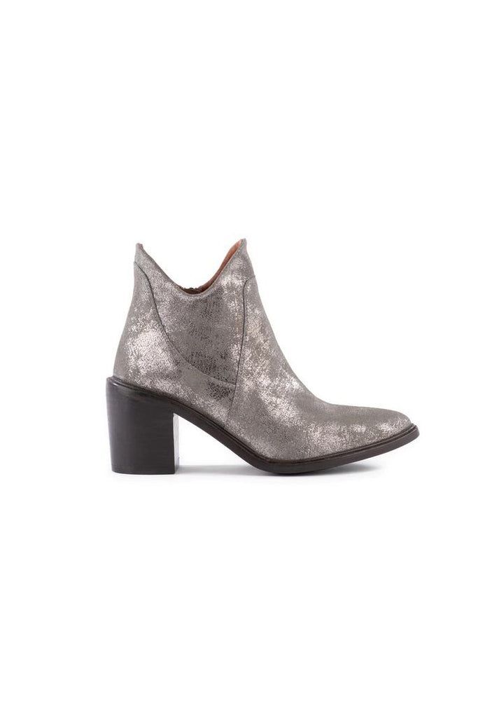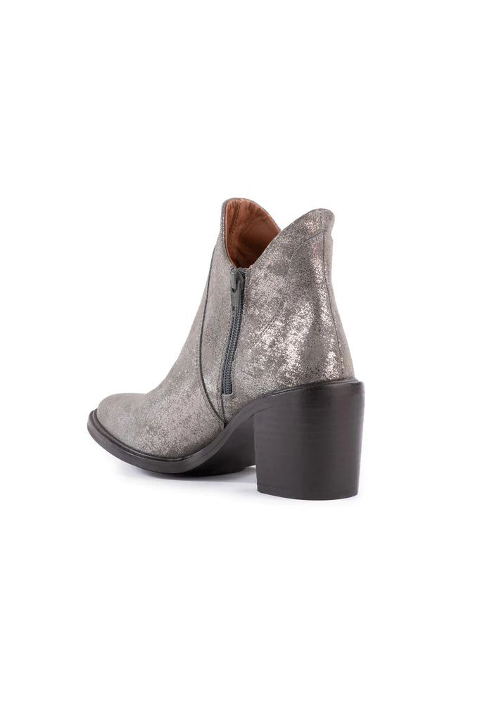 Personify Shopmodern cut-out ankle boots in metallic pewter make a statement with a slightly exaggerated block heel and sleek pointed toe. an inner zipper and cushioned insoles make wearing these a dream, not to mention they can easily be dressed up or down.