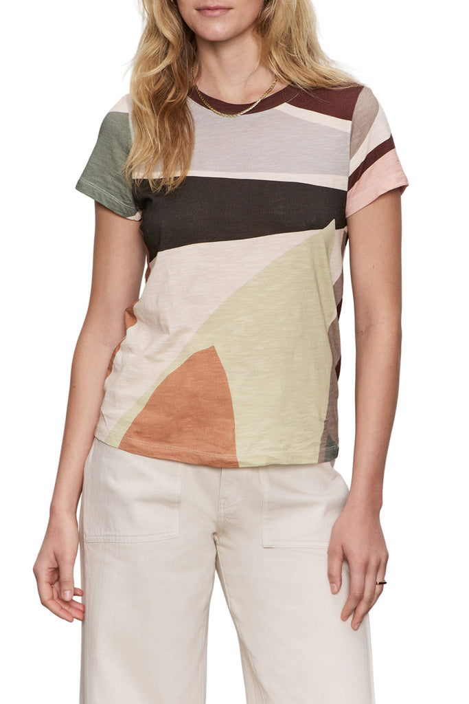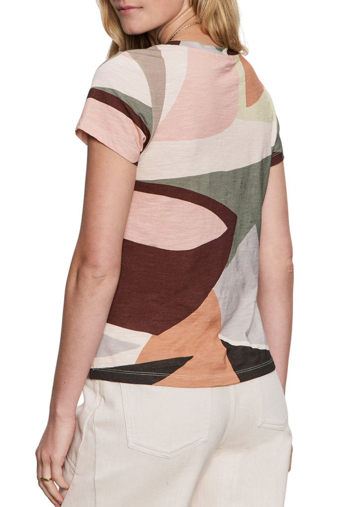Personify Shopbasic t-shirt in a muted abstract pattern. soft, lightweight tee features a crew neckline, short sleeves, and a relaxed, not oversized, fit. easy to wear tee can be paired with a variety of bottoms and is perfect to wear solo or layered all year long.