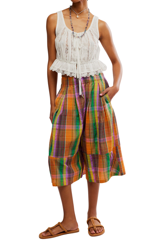 Personify Shopfree people generously sized lace tank in clean ivory. cropped tank is lightweight and features a scoop neckline, stretchy elastic waistband with tie, and pretty lace details throughout. tank is easy to wear and cute - perfect to pair with a variety of bottoms this summer.
