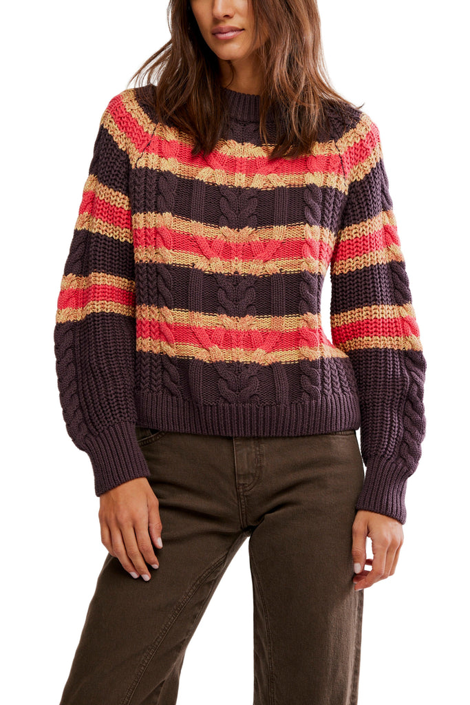Frankie Cable Striped Pullover // Free People *XS-XL*