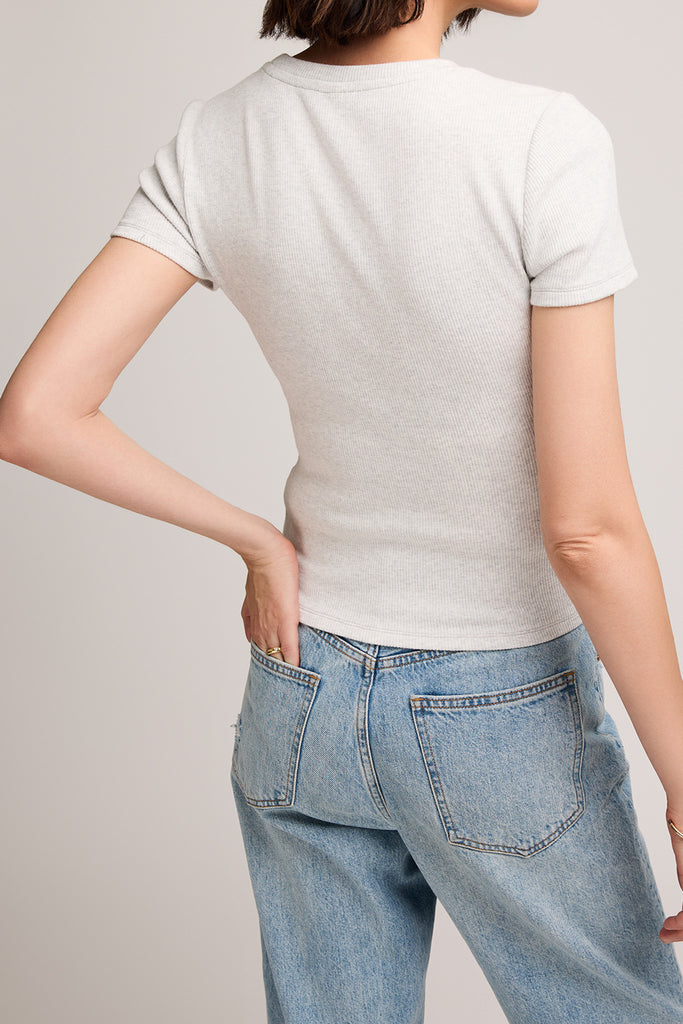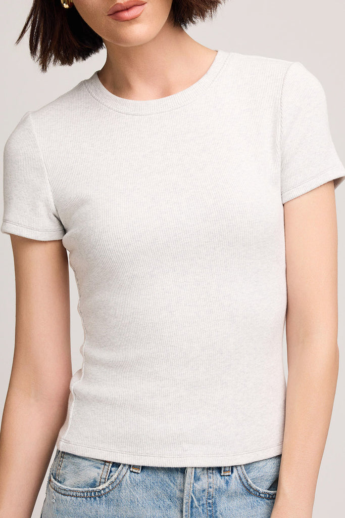 Personify Shopcomfortable and soft midweight cotton blend tee in light heather grey. ribbed tee features a crew neckline and a contour fit. easy to wear tee feels nice against the skin and is an essential layering piece you'll reach for all fall and winter.