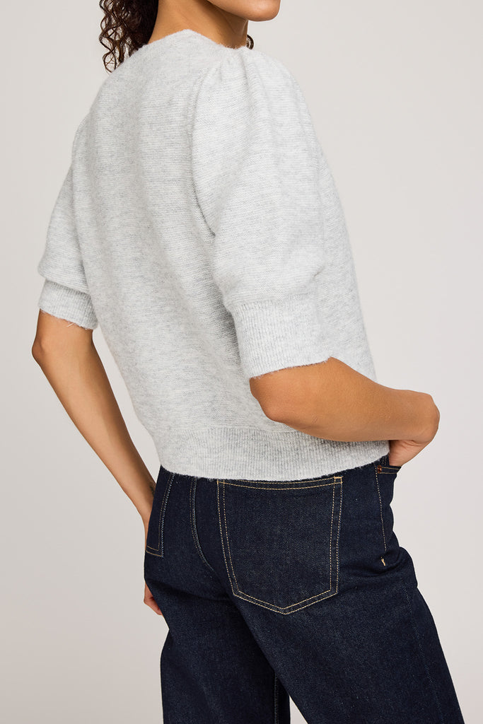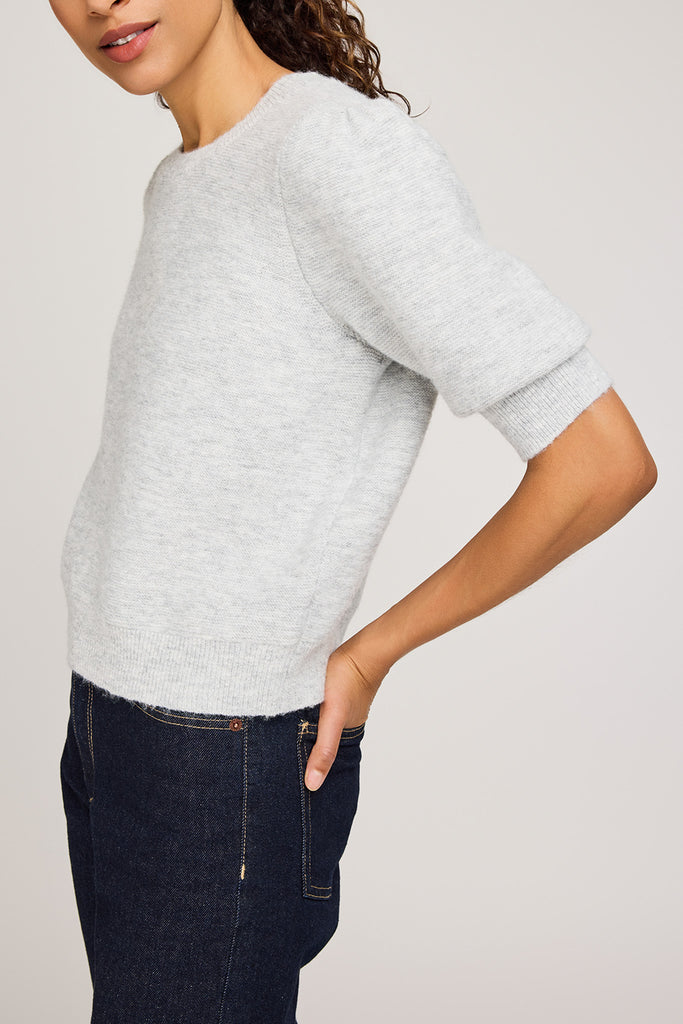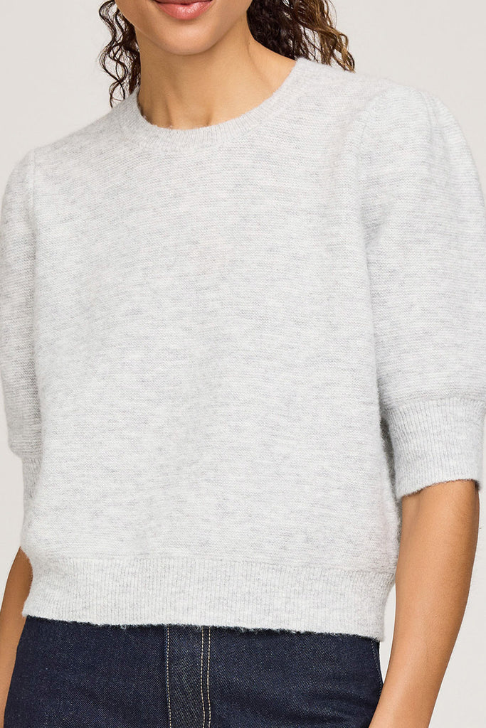 Personify Shopeffortlessly feminine knit top in heather grey. beautifully knit top is made of a soft, brushed yarn in a textured horizontal knit pattern. easy to wear top features a crew neckline, short puff sleeves, and a soft, luxe-feeling fabrication. top can be styled casually with jeans or dressed up with a skirt or trousers.
