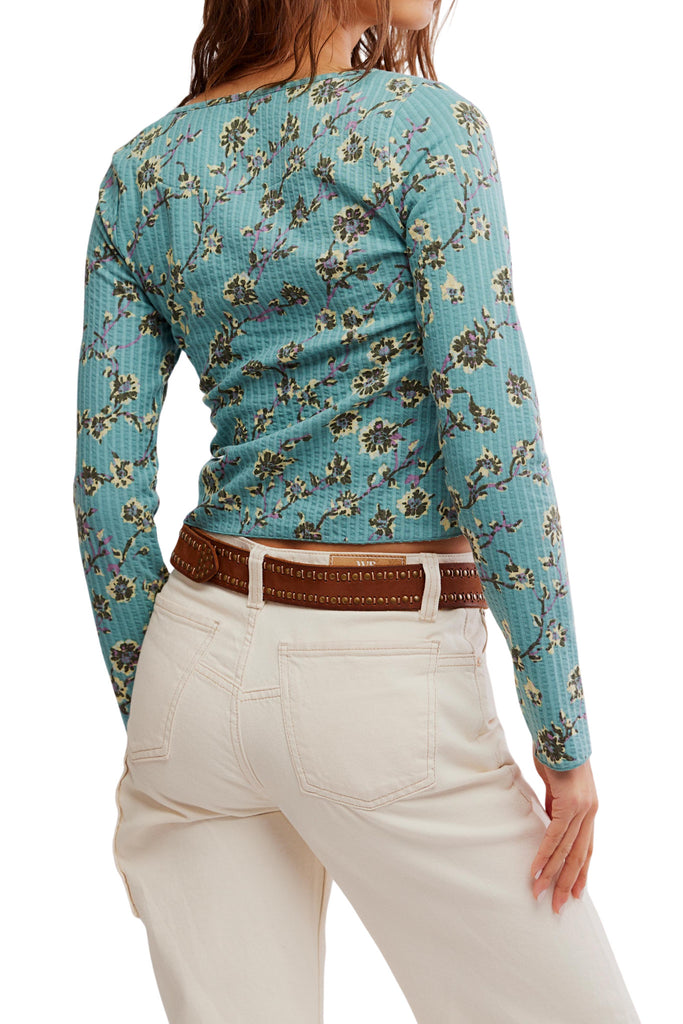 Mineral Blue Printed Tilly Long Sleeve Top // Free People *XS-XL*