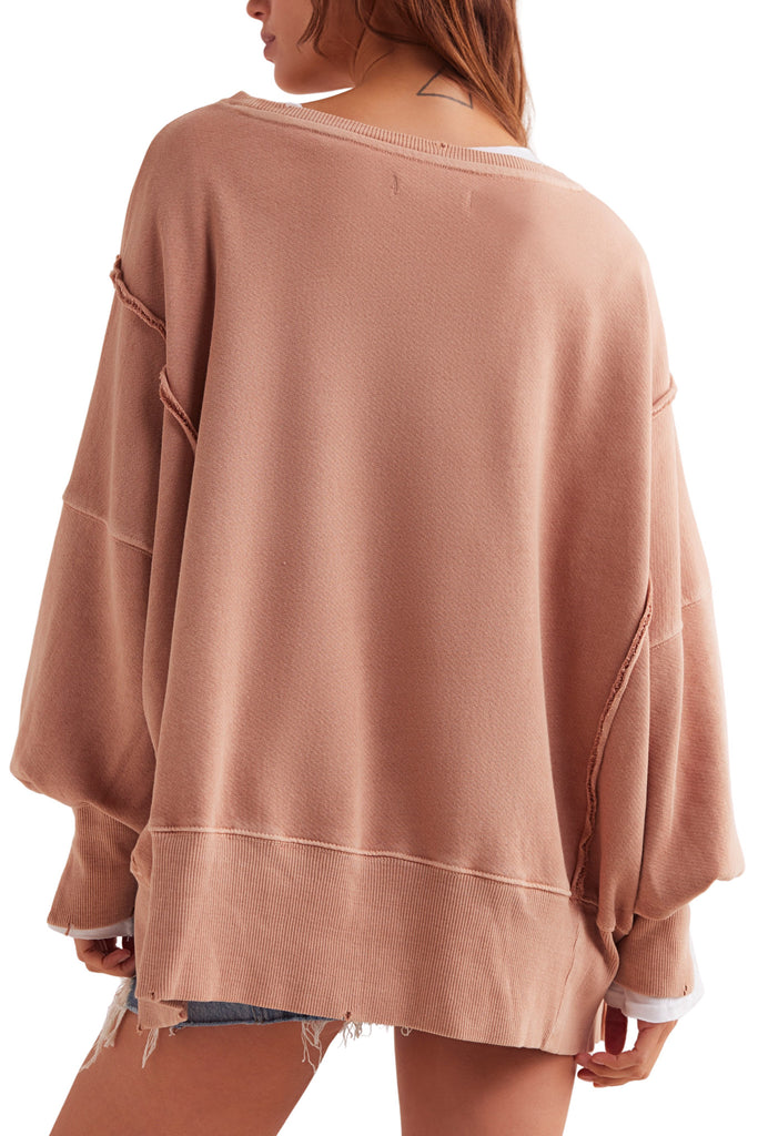 Personify Shopfree people oversized pullover in tan with a western-inspired horse graphic. pullover has a slouchy, relaxed fit and features a scoop neckline, dropped shoulders, side slits at bottom, ribbed hems, and defined seaming throughout. cool throw-on-and-go pullover is designed to take any look to the next level. pair it with classic denim or comfy loungewear for a casual look.