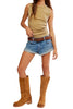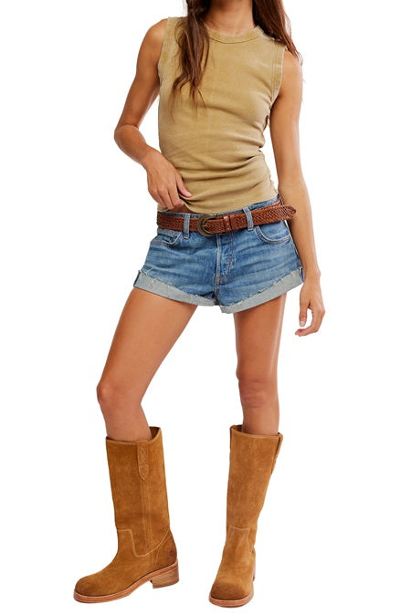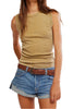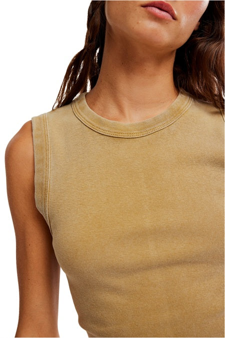 Personify Shopfree people knit tank in washed olive-hued khaki color. comfortable top has a sleeveless, fitted silhouette and features a high crew neckline, wide straps, and a center seam detail on back. sleek, versatile top has a relaxed, yet polished look that works for everyday wear.