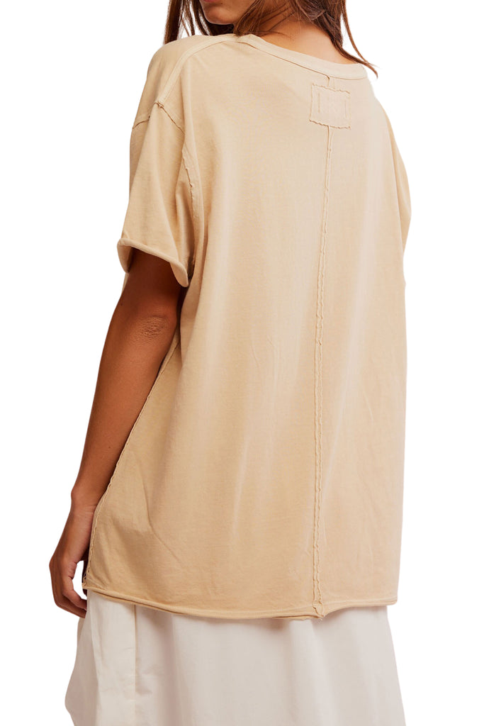 Personify Shopfree people classic oversized tee in versatile tan color. cozy and soft cotton tee features a deep v neckline, dropped shoulders, boxy fit, and raw edge seaming for a casual and cool look. tee is perfectly paired with your favorite jeans or is effortlessly layered with loungewear. you’ll be reaching for this fresh feeling tee all year long.