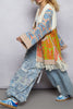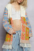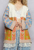 Personify Shopunique open cardigan with a roomy, oversized fit. colorful cardigan features a crew neckline, quilted yoke in white jersey, patterned chenille sleeves and body, and a feminine lace-trimmed bottom hem. long cardigan is warm and cozy. it makes a great outer layer to wear in fall's cooler weather.