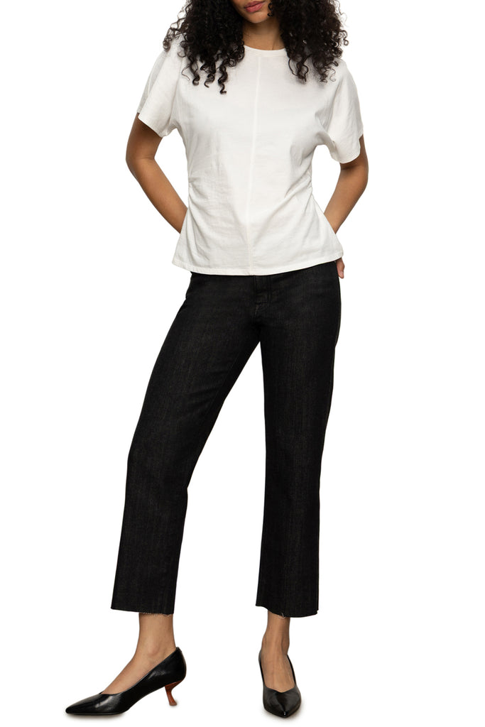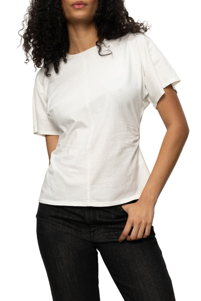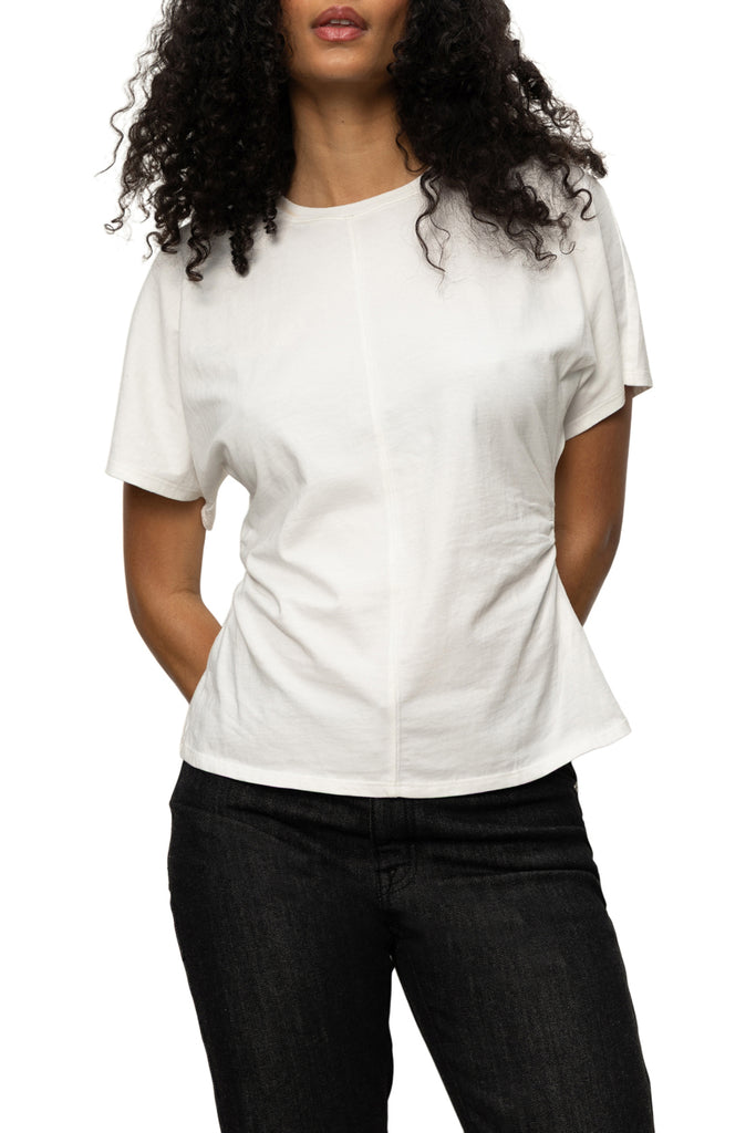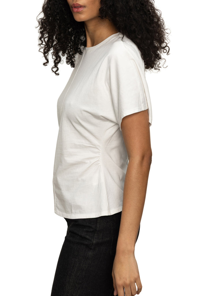 Personify Shopsoft and comfortable elevated white tee. easy to wear tee features a crew neckline, dolman-style short sleeves, and special shirred details at the waist. versatile top makes a wonderful alternative to your basic white tee.