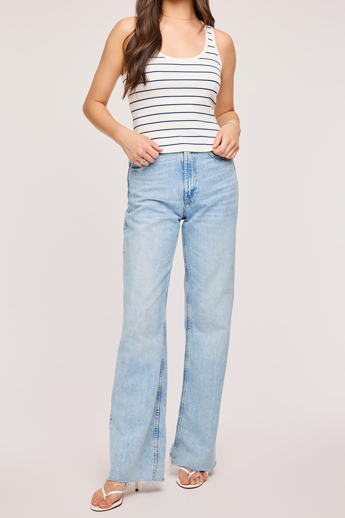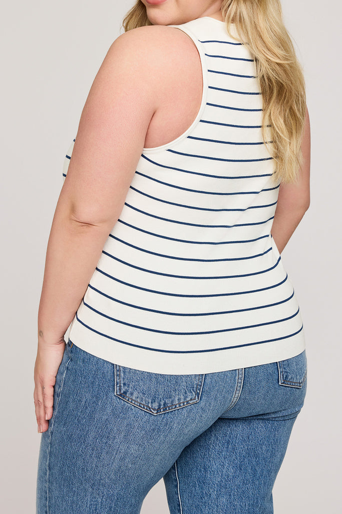 Personify Shopbeautifully made ribbed knit tank in classical nautical stripes. top has the perfect amount of stretch for a contour smoothing fit. tank features a scoop neckline and rolled hem detail along the neckline and armhole. tank is a high-quality basic you will wear on repeat this spring and summer.