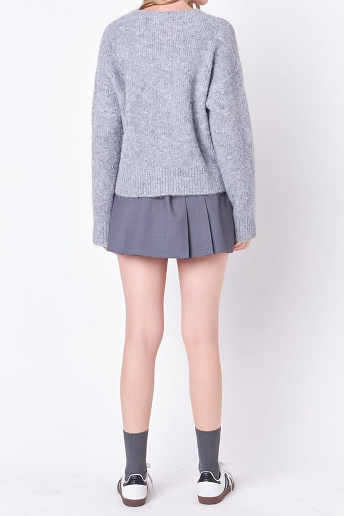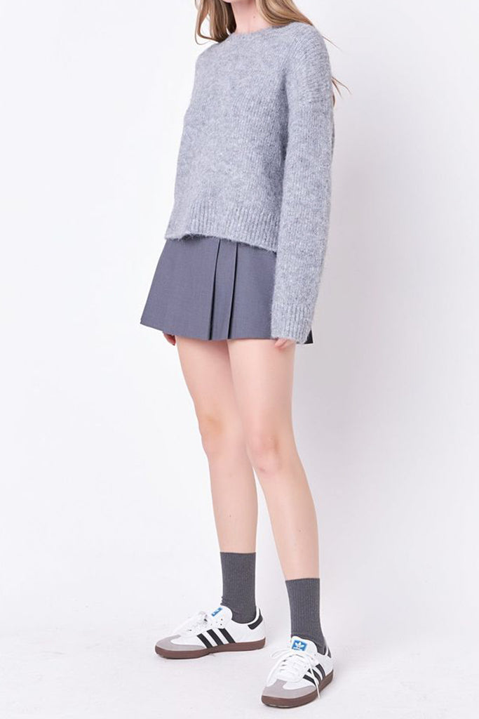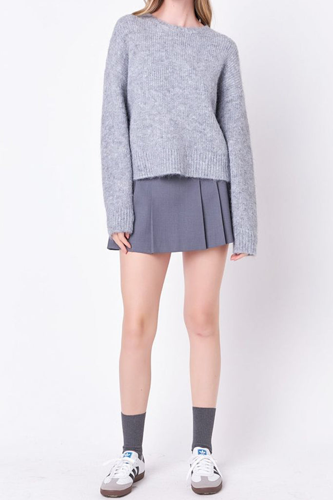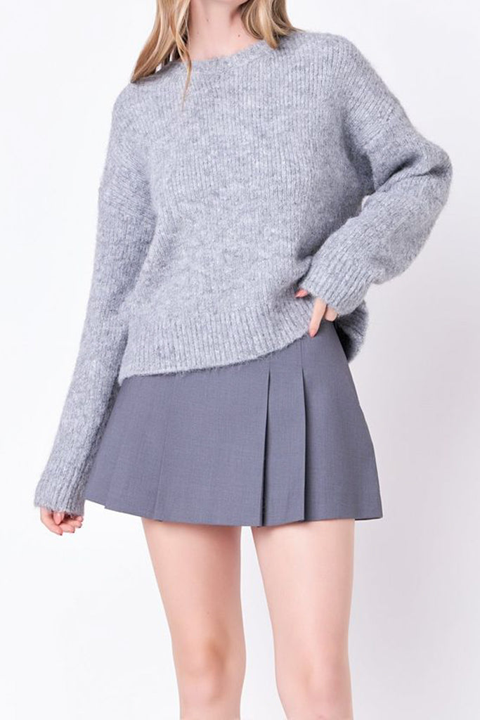 Personify Shopcomfortable, fuzzy sweater in heather grey. perfectly combining fashion and comfort, this light and soft knit blend sweater features a classic crew neckline, dropped shoulders, roomy long sleeves, ribbed cuffs and hemline, and a roomy, relaxed fit. pair with the thunderstorm sweater pants for a cute, coordinated outfit or wear with your favorite jeans for a cozy and casual look.
