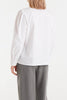 Personify Shoplightweight blouse in crisp white with a special tie detail at neckline. nice feeling cotton top features a high neckline, pleated details across the shoulders, puffed and roomy long sleeves, and an oversized fit. bow can be tied as pictured or knotted loosely with ends hanging down. cute top is perfect to wear on its own or to style under a sweater vest.