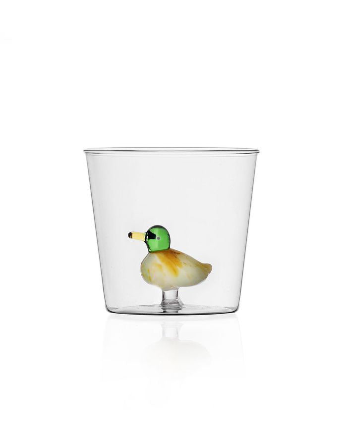 Personify Shopbeautifully made glass tumbler from ichendorf. glass tumbler features a handmade duck figurine inside.
