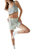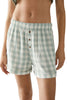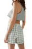 Personify Shopfree people leisure day essential boxer shorts in aqua and white gingham plaid. these comfy shorts feature a boxer-style silhouette with wide leg design and front button-up detailing. shorts make great pajama bottoms and comfortable loungewear.