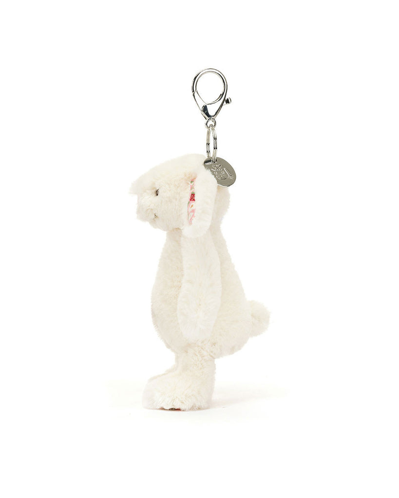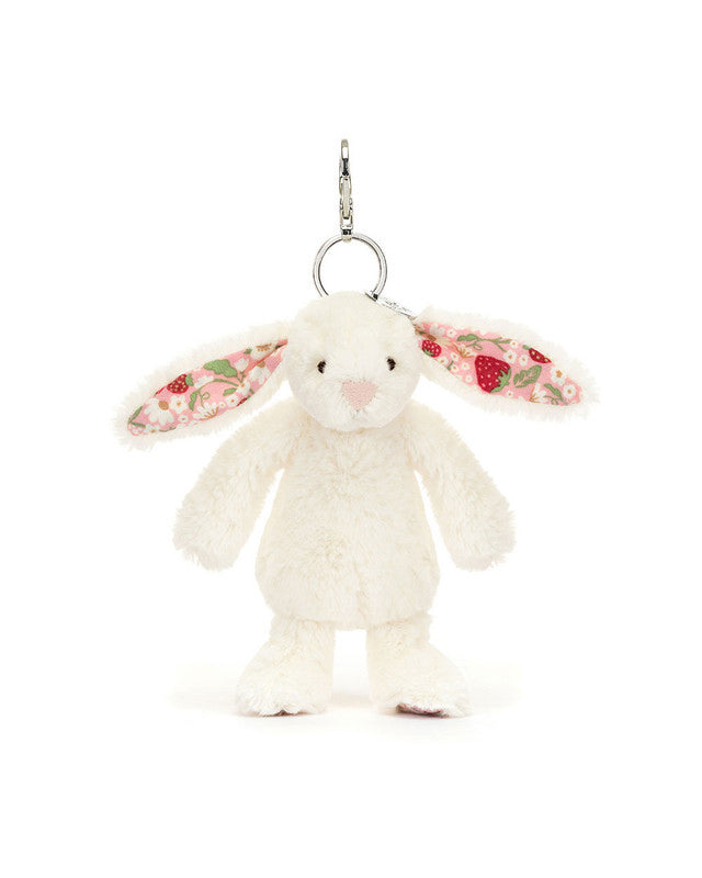 Personify Shopblossom cream bunny bag charm has been hopping around the garden. this pocket-sized blossom cream bunny is soft in iconic bashful fur, and has soft cotton ears, printed with an original jellycat design of juicy strawberries and cream flowers on a pink backdrop. use the silver clasp to attach bunny to any bag for the perfect outdoor adventure companion.
