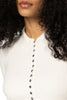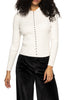 Personify Shopfitted cardigan in chalk white. delicately ribbed knit cardigan has a super soft fabrication and features a spread collar, button front, and a form-fitting silhouette. versatile cardigan can be worn as pictured, partially buttoned over a layer, or worn unbuttoned over a tank or dress.