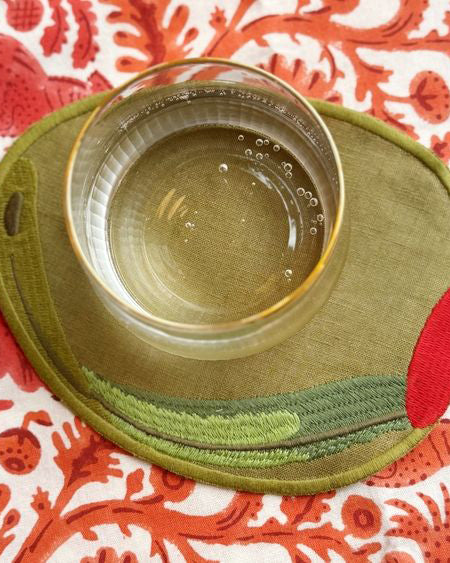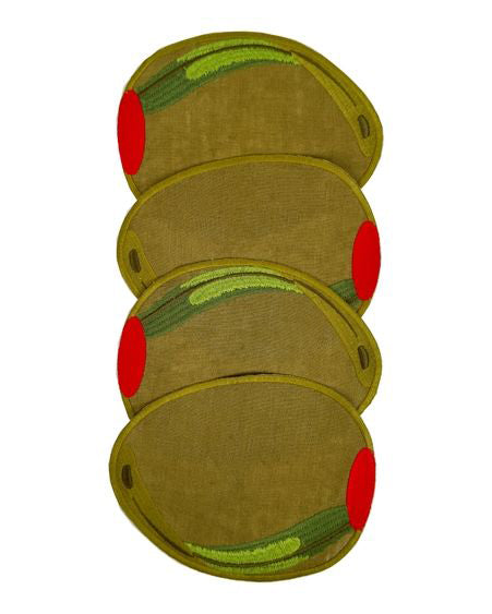 Personify Shopset of four embroidered cocktail napkins in a unique shape. napkins make a fun gift for your favorite home mixologist.
