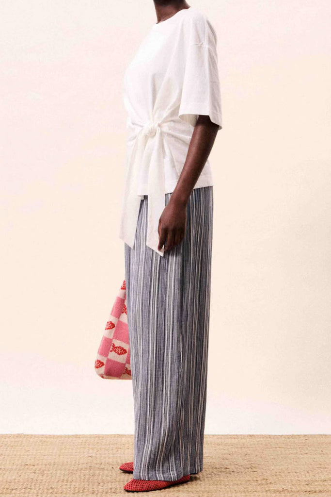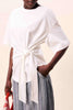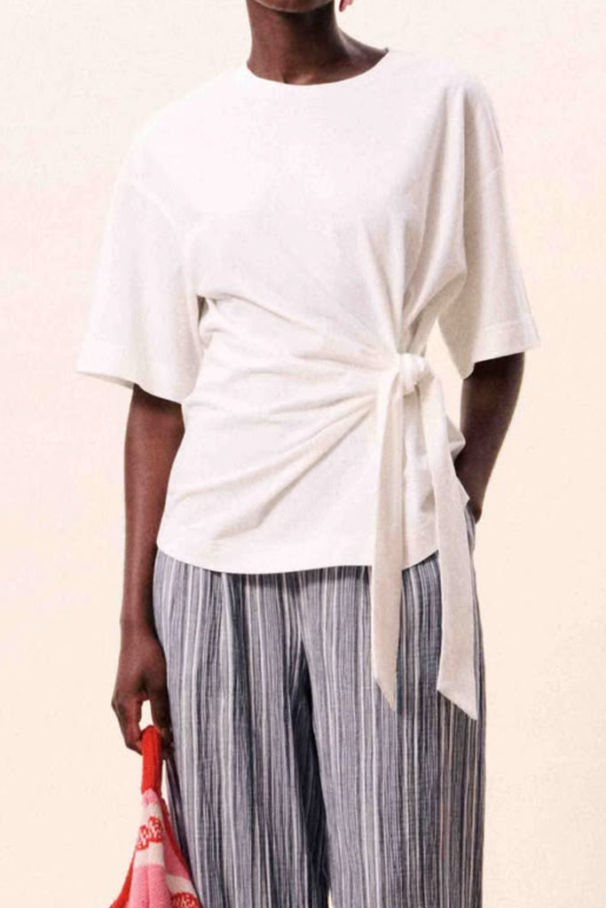 Personify Shopelevated white tee with special side tie detail. lightweight top has a soft, cotton jersey fabrication and features a crew neckline, roomy short sleeves, and adjustable decorative bow tie detail on the right side. versatile tee makes a special basic to pair with your favorite bottoms and can easily be dressed up or down.