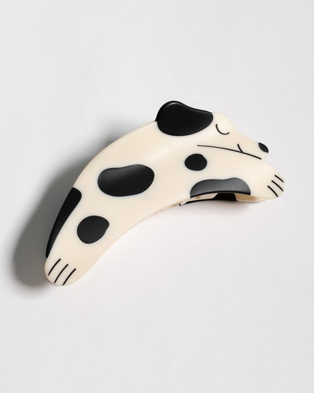 Personify Shopa cute puppy hair claw in cream with an adorable array of black spots!
