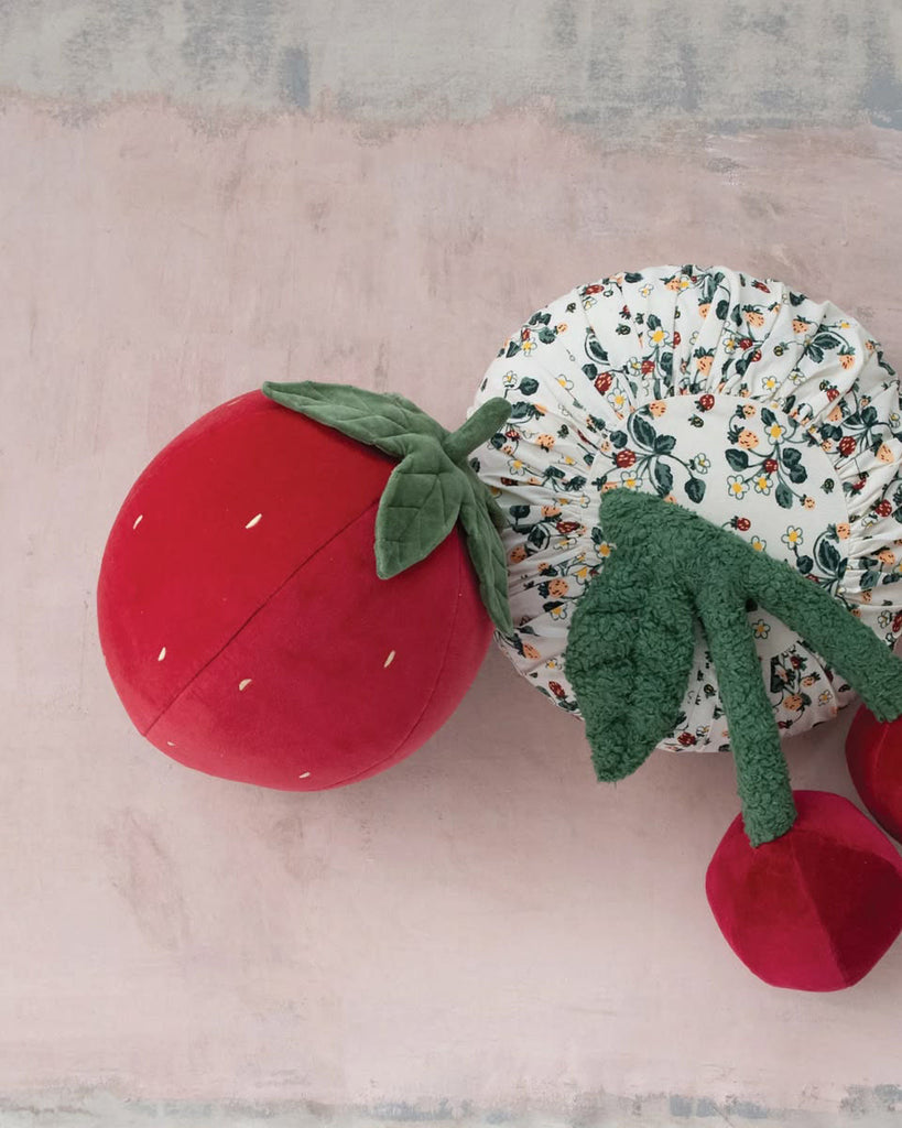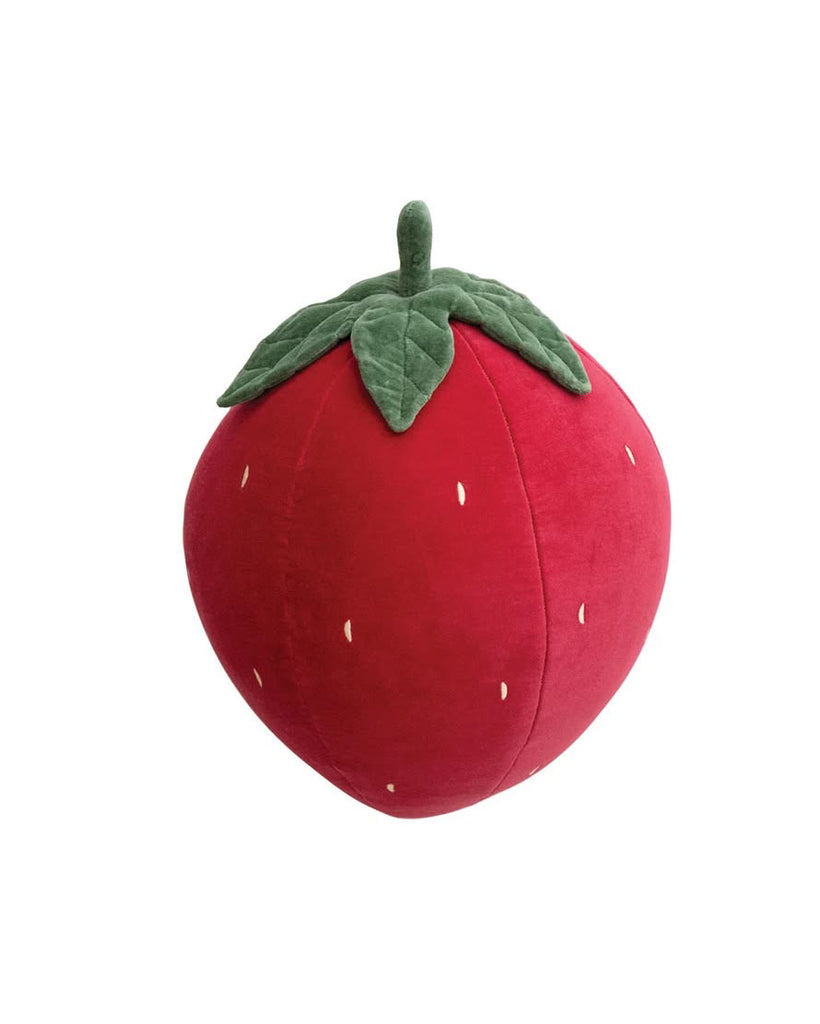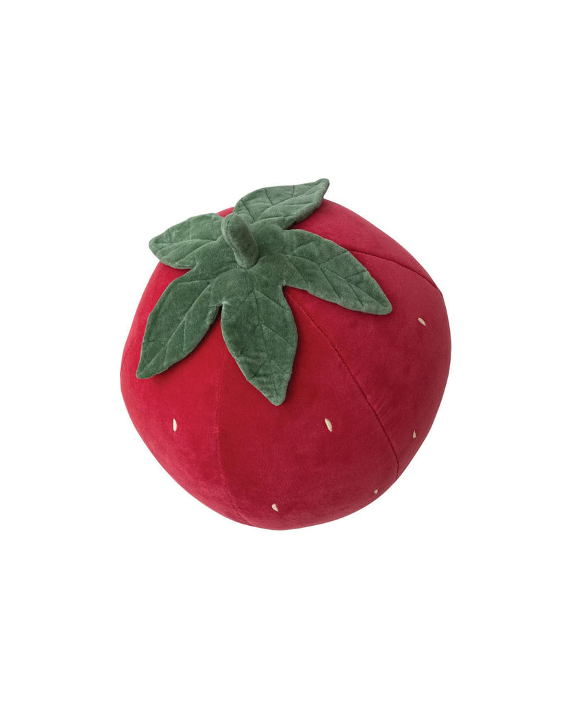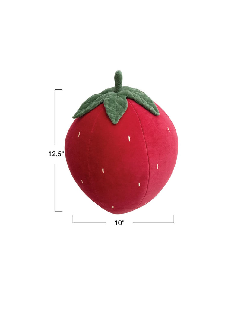 Personify Shopadd a bold pop of color to your living space with this soft strawberry pillow. pillow comes in the shape of a delicious strawberry and is made from a luxe cotton velvet. pillow features embroidered seeds throughout and a beautifully detailed stem and leaves.