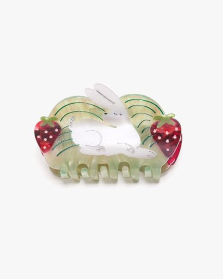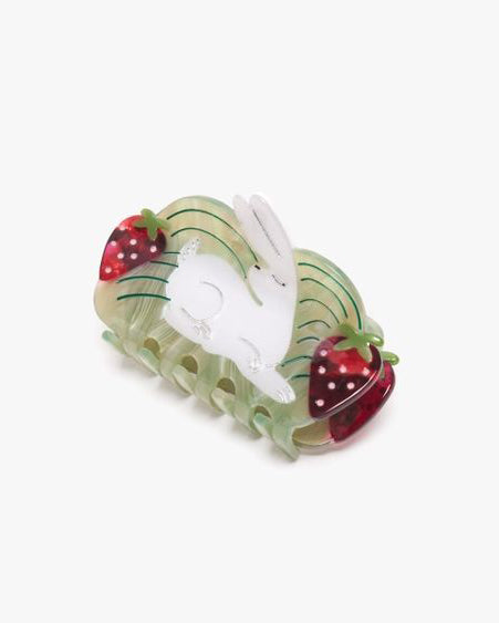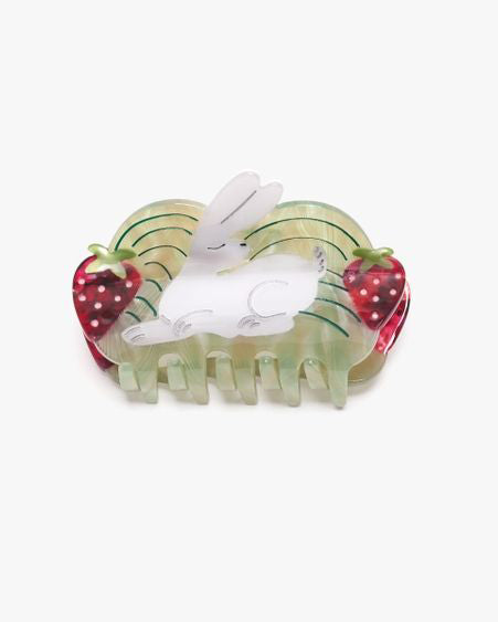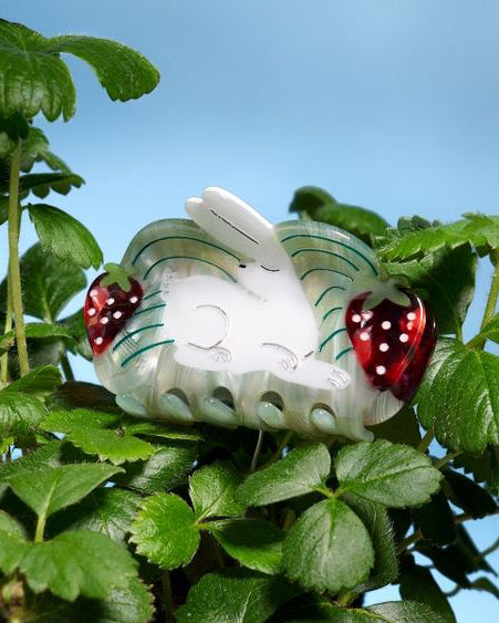 Personify Shopa white rabbit takes a break from the afternoon sun in a meadow of juicy red strawberries. medium-sized hair claw is beautifully made and is the perfect accent to any summer outfit.