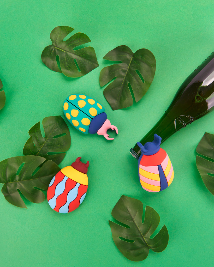 Personify Shoppop open some fun! beetle-shaped bottle opener is made from durable metal and silicone with a practical magnetic back to keep it handy. ergonomic bottle opener is easy to use and adds a playful splash of color to your kitchen. it's a perfect gift for nature lovers and fans of quirky accessories.