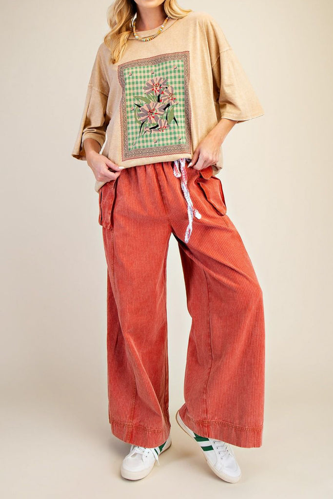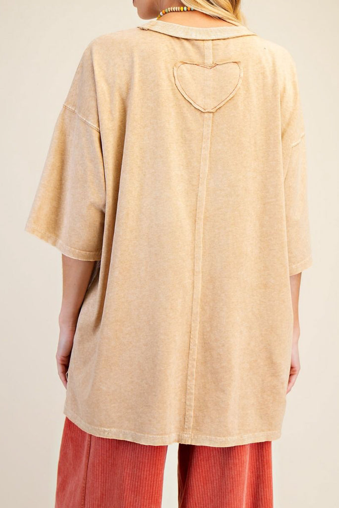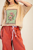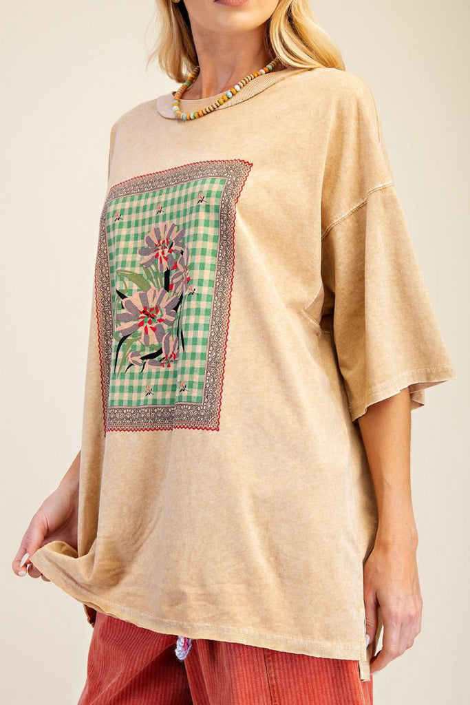 Personify Shopoversized tee with a pretty and feminine floral graphic. tee comes in a washed tan color and features a crew neckline, dropped shoulders, an extra roomy fit, and special exposed seam details (peep the heart detail on back!). easy to wear tee is perfect to pair with your favorite lounge bottoms, jeans, or shorts this spring and summer.