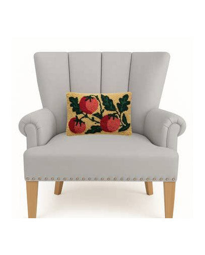 Personify Shopadd some color to your living space with this beautifully made hooked pillow. rectangular pillow features a colorful design of ripe tomatoes on a two tone green vine.