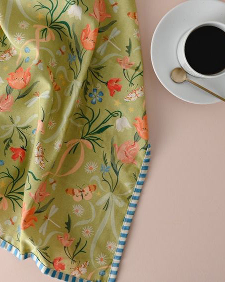Personify Shopcolorful cotton tea towel with a gorgeous floral print. towel has a charming striped edging to elevate and add beauty to any kitchen space. towel has a loop for easy hanging. it makes a thoughtful gift!