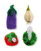 - dimensions: eggplant - 2.75" w x 6.5" l; garlic - 4" w x 6" l; tomato - 4.25" w x 5" l; lettuce - 4" w x 5.5" l