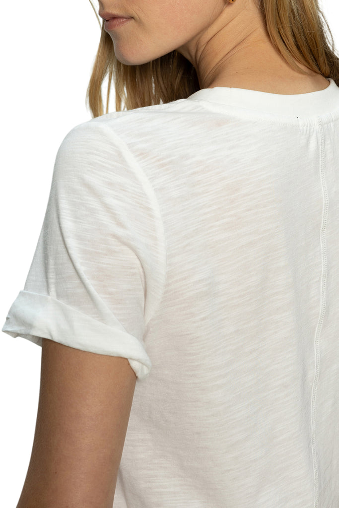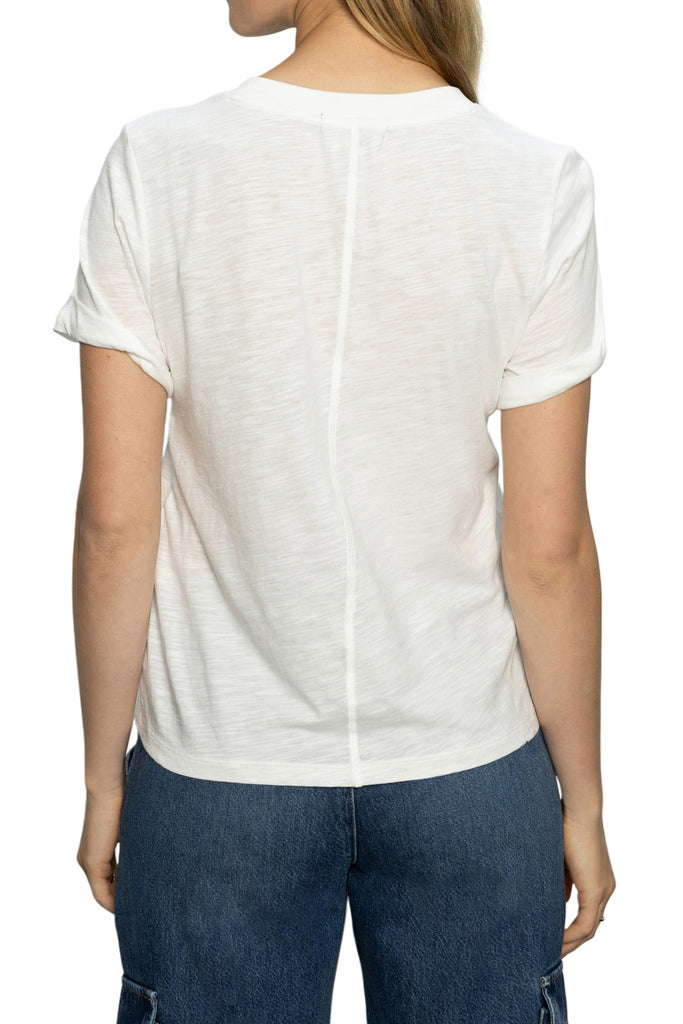 Personify Shopan updated version of the fan favorite perfect tee in versatile white. jersey slub knit tee features a crew neckline, rolled cuffs, and a slouchier fit than the classic perfect tee. easy to wear tee is a perfect basic and looks great with a variety of bottoms. tee can be worn solo or layered for year round wear.